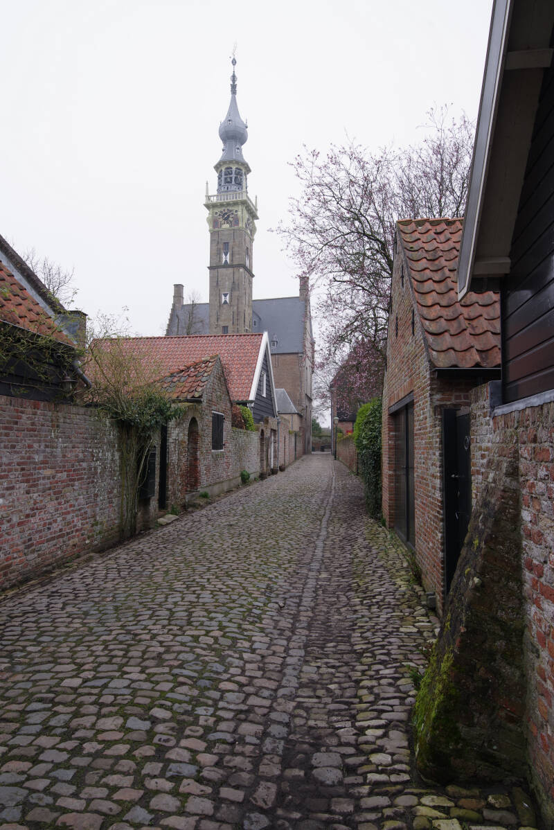 Veere. Vroeger een welvarend havenstadje. In de loop der eeuwen is de rijkdom verdwenen, wat vooral te zien is aan de nooit afgebouwde toren van de Grote Kerk.