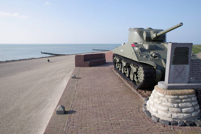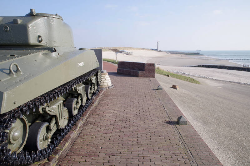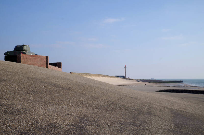 Tot slot Westkapelle. De indrukwekkende zeedijk geeft de indruk heel Walcheren te beschermen tegen de zwaarste stormen. De Shermantank is een gedenkteken voor de bevrijding van Walcheren aan het eind van de Tweede Wereldoorlog .